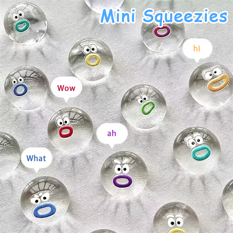 😌Mini transparent squeeze toy with cute emoji expressions.